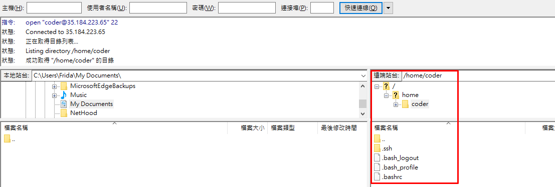恭喜恭喜!這樣就可以成功透過SFTP連線到GCP上的Linux主機,可以方便地進行檔案上傳下載以及修改了。