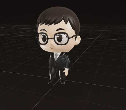 模型背後應該有一個模型包裝盒,上面印著Q版卡通的角色。在包裝盒前面,用圓形塑膠底座放置我給你的Q版卡通手辦模型。我希望PVC材質能夠清晰地呈現出來,背景要室內。